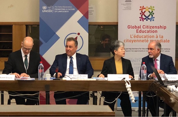 وأكد سعادته، أن مبادرة "التعليم من أجل المواطنة العالمية" التي يبحث خبراء اليونسكو في باريس حالياً في سبل تحقيقها، يجب أن تعتمد على تزويد المعلمين في المراحل الابتدائية والثانوية بآليات لدعم مبادئ حقوق الانسان والديمقراطية وسيادة القانون في كافة مجالاتها، ولاسيما في منع الارهاب والتطرف بغية الوصول الى ثقافة السلام والتسامح والحماية من التطرف والعنف والارهاب وفق احترام كامل للتنوع الثقافي.